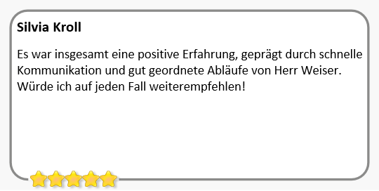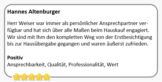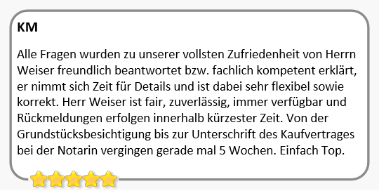 Hinter jedem dieser Referenzobjekte steht ein strukturierter Verkaufsprozess, den ich von der ersten Sekunde an verantwortet habe. Die Basis meines Erfolgs bildet dabei die transparente Marktwertermittlung und eine zielgerichtete Vermarktung bis hin zur finalen Schlüsselübergabe. Das Ergebnis spricht für sich: Reibungslose Transaktionen zur vollsten Zufriedenheit von Verkäufern und Käufern. Ich bedanke mich für das große Vertrauen und wünschen den neuen Eigentümern eine wunderbare Zeit in ihrem neuen Heim.